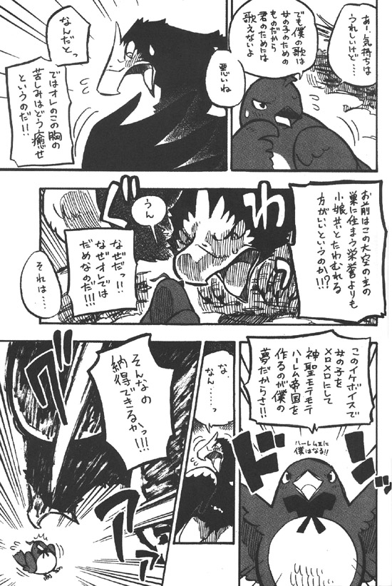 참수리: 너는 이 넓은 하늘의 주인의 둥지에 사는 영예보다도 계집들과 희룽거리는 편이 좋다고 하는 거냐!!? (구왓)