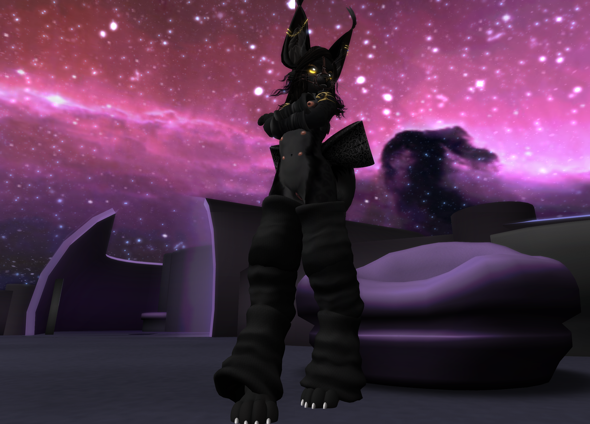 Hate to rain on your parade, but I don't go to clubs on SL, no reason to hit a sim with massive amounts of lag from us furrie avis that are noghing more the huge lag machines, I prefer to stay on my sim, either at my home with a very selective group of friends, of in my photo studio taking high demand pictures of other furs for their portfolio or profiles. Since I have a fiancee IRL I don't actively go looking for any one night yiff RPs, don't need to, not a lonely shut-in with fear of the sun. But if you want to see what real pitcures look like from SL, not some screen caps, look me up, if you can, shouldn't be hard, if you know where to look.