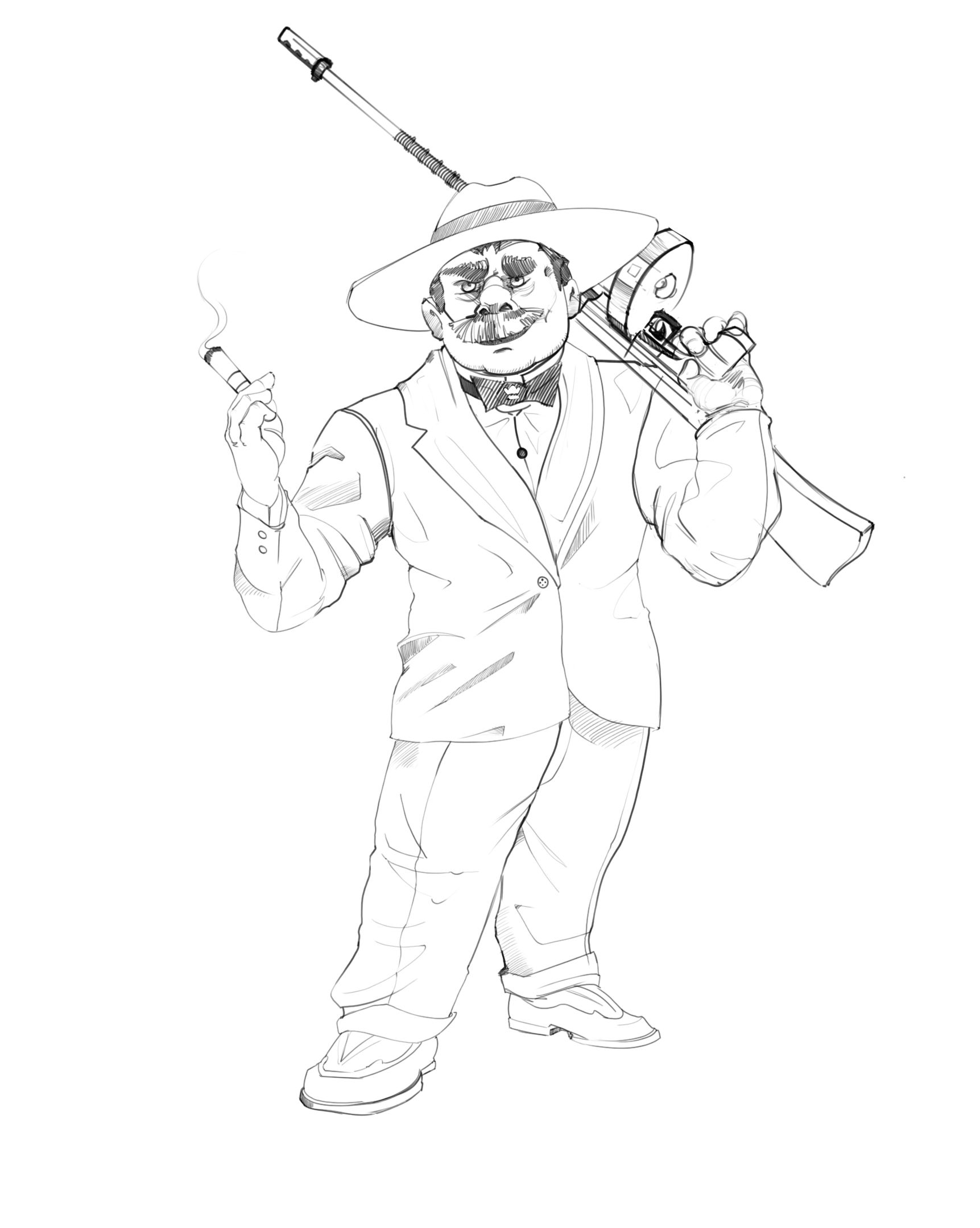While this one felt less successful to me, here's another photobashing project. This time Killer Croc along the same 1920 and gangster era