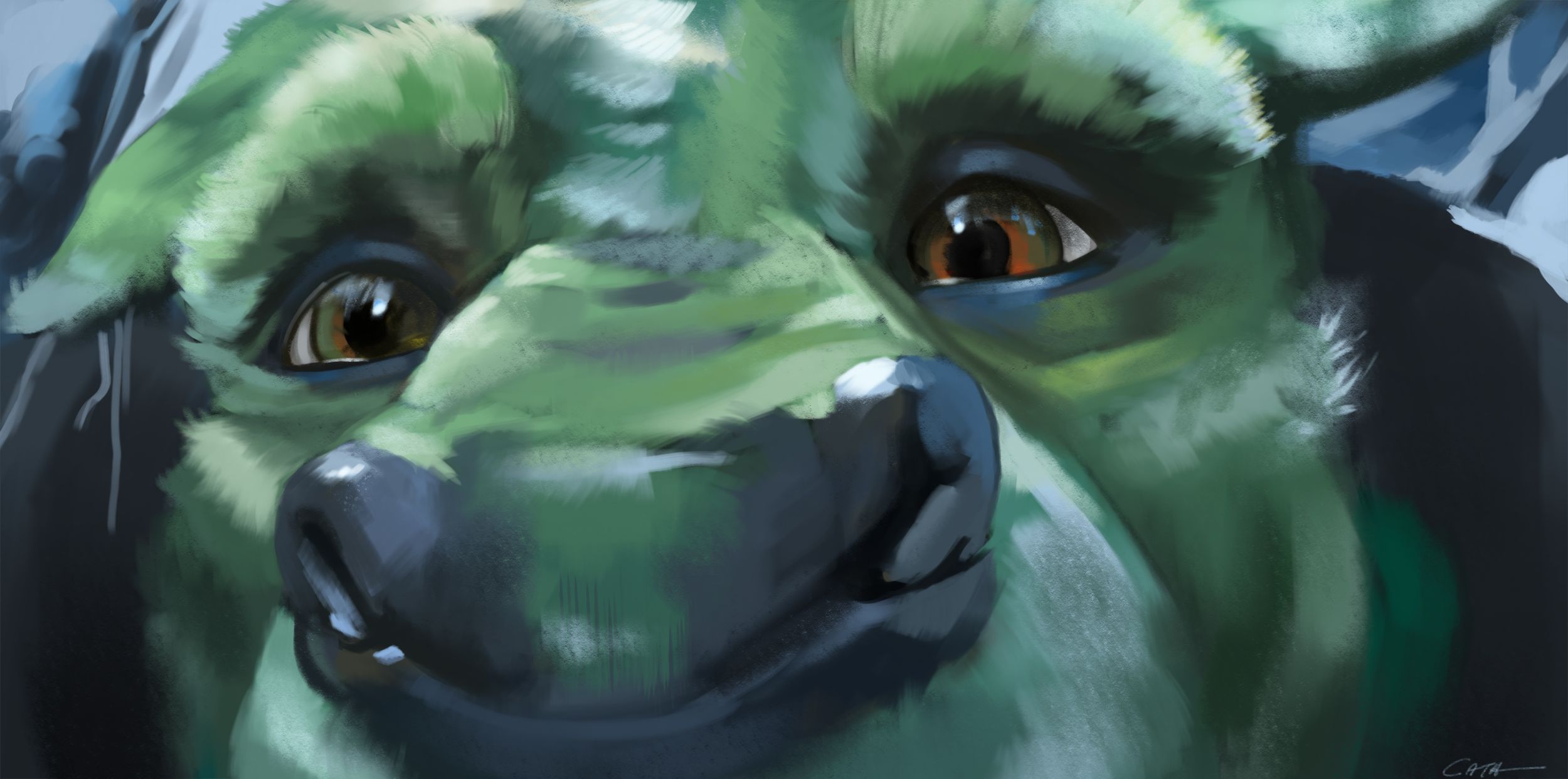 Little WIP for a commission I'm working on. Still have to lighten his fur and make the background more clear!