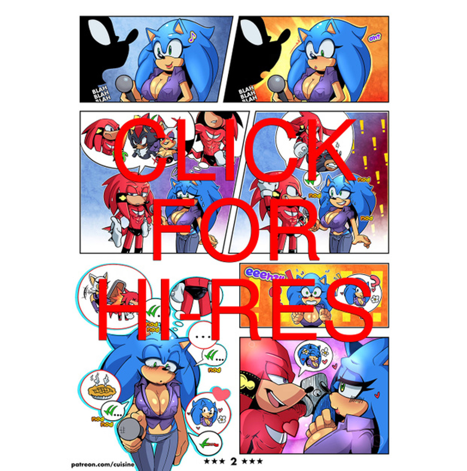This short crack story will hopefully be fully colored and a new page will be uploaded daily starting from 22nd of October. There will at least be 6 pages, but could be more -- although if there is, I'll probably have a lot of repeated/edited frames for added effect. But do expect 6 pages worth of content and an immeasurable amount of steamy and magical Sonic on Rouge action.