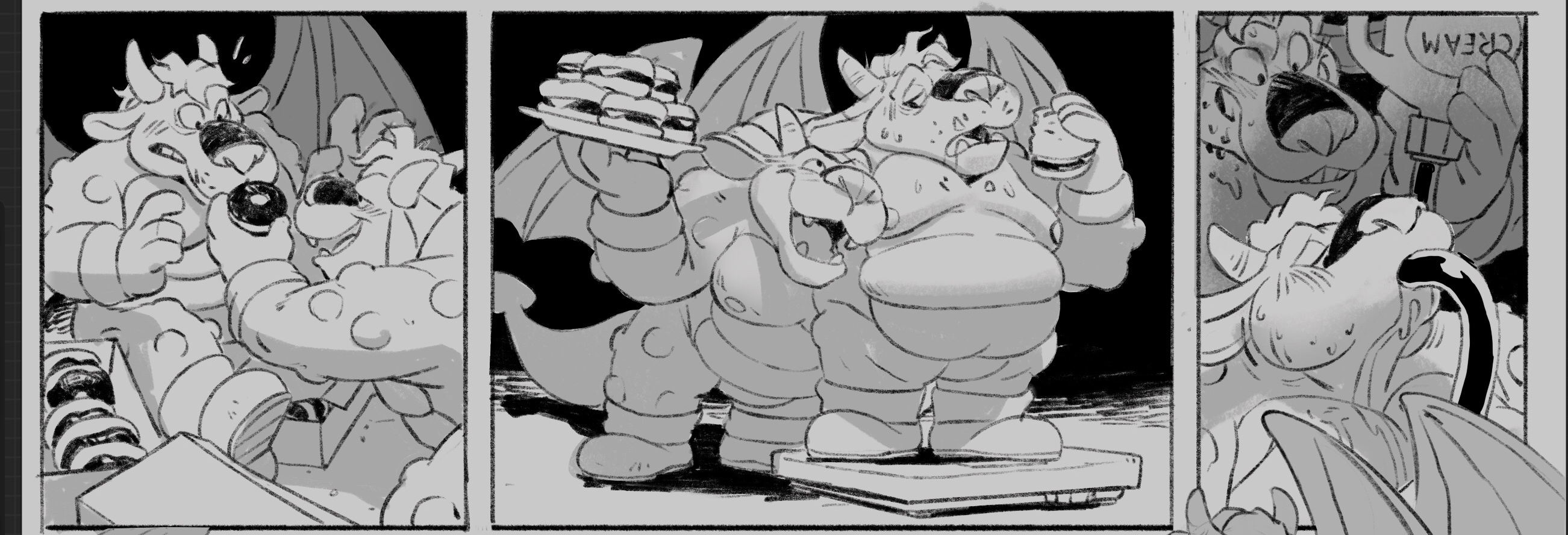 Hey, was messing around and decided todo a couple pages of a mini King K. Rool x Bowser feeding comic or something!