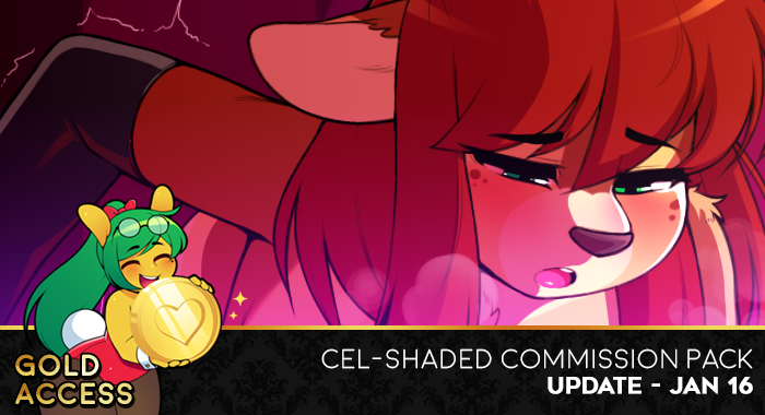 It's time to take some commissions! Exclusively for those of you in the $20 pledge level, but there are only two! These sketch commissions will be colored, cel-shaded, and are limited to 1 character. The cost of your monthly pledge counts toward your final commission total.