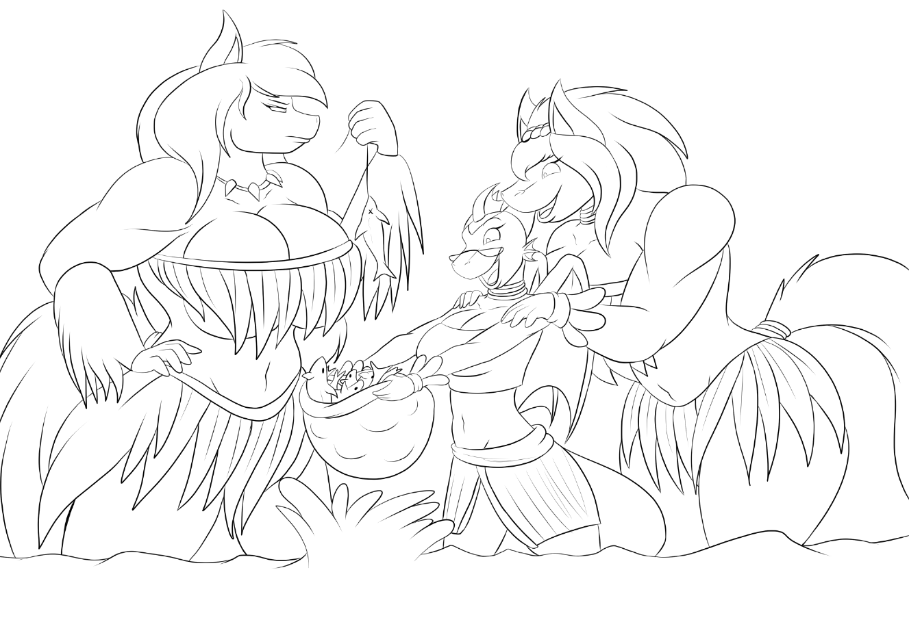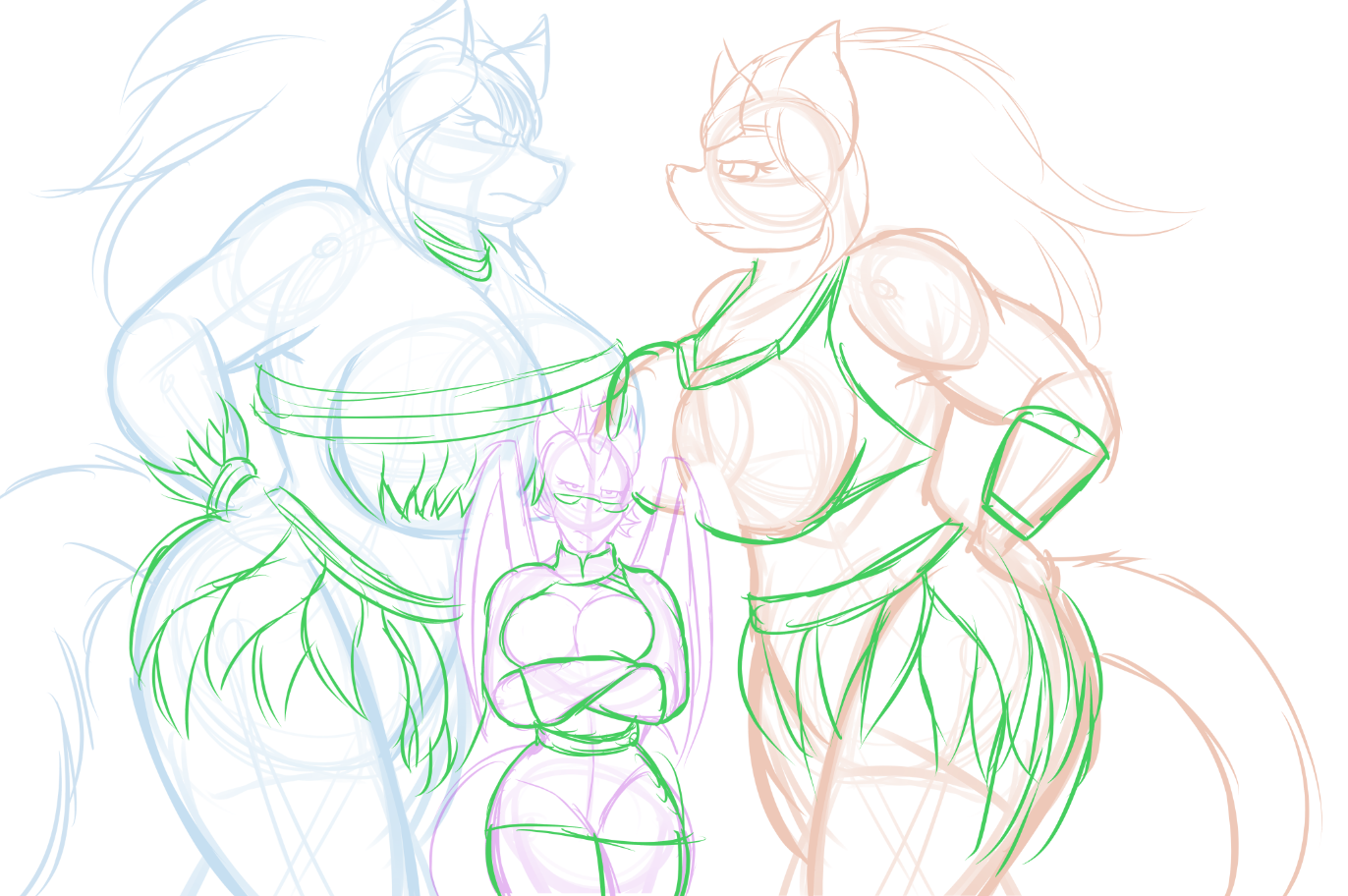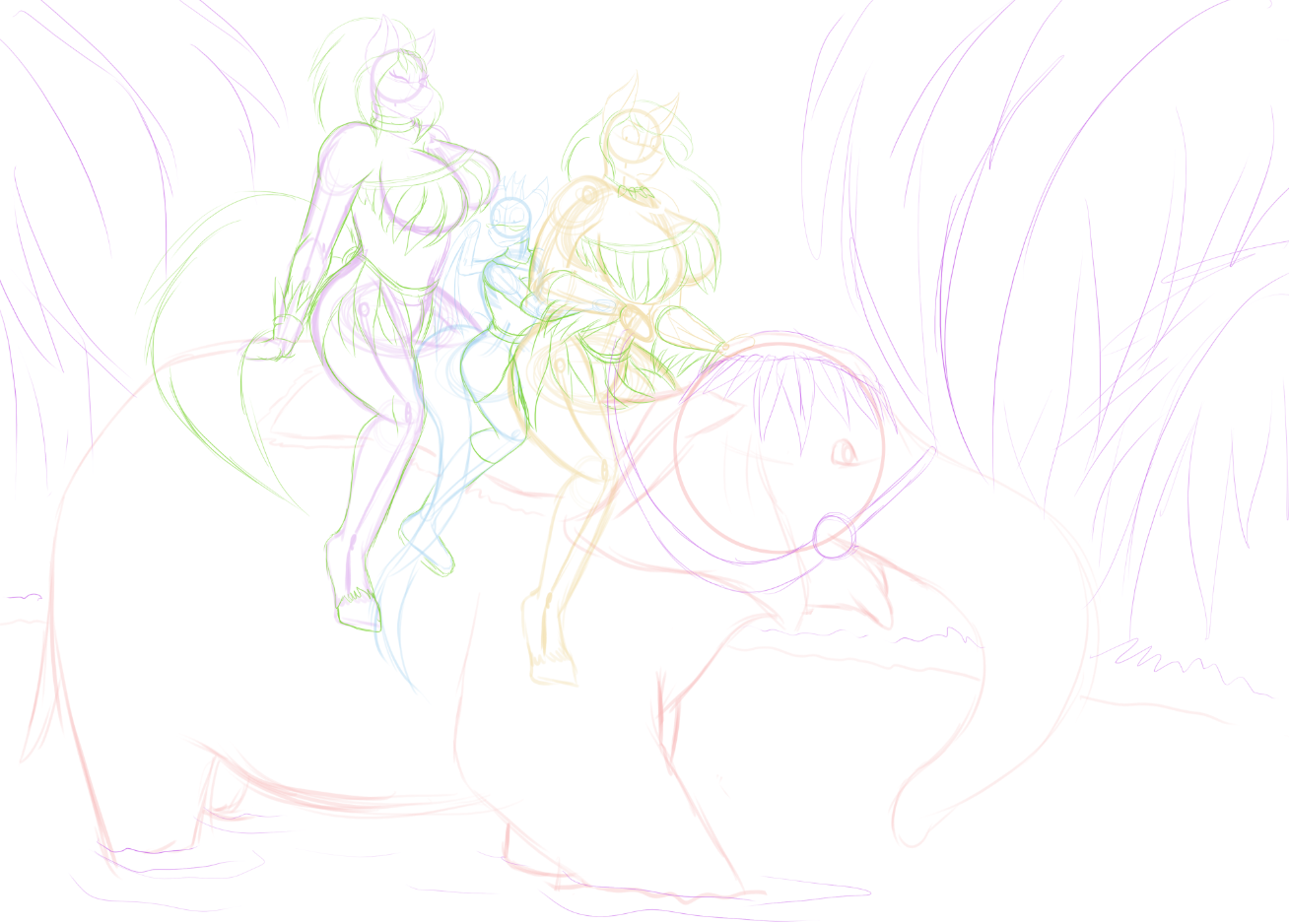 This is an old sketch of the horse tribe's rivalry with the Kitteh tribe, with Tulip naturally in the middle XD