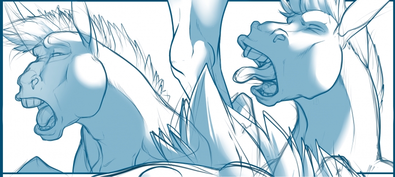 So here's more of the animation's direction for where it's going. I still have a ways to go to get it right, but still working on it and making the rough work, to the detailed, and then soon line and color.