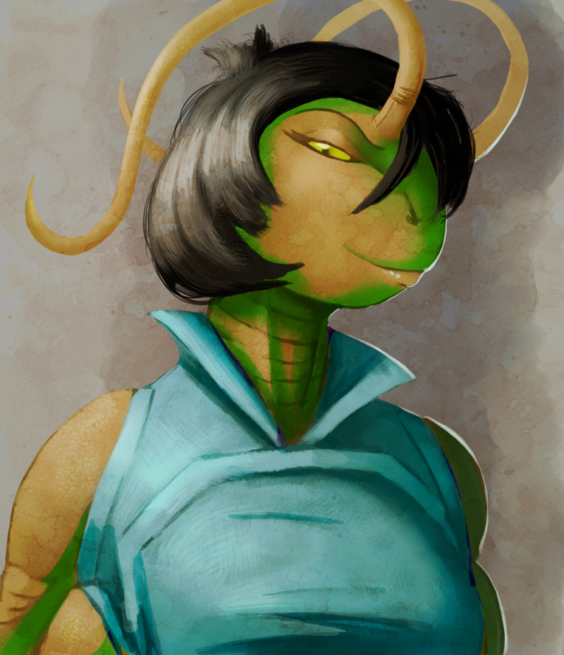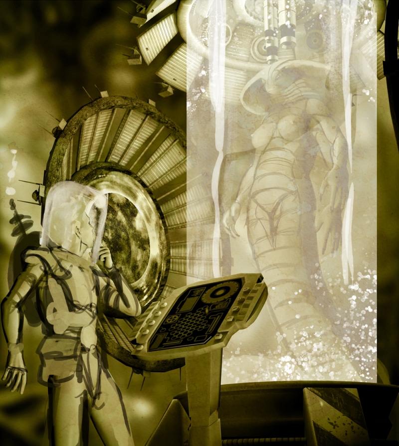 aside from Mar and Shesheik these two, Aurther and Liu Sheeah are my second 'official' human/arthropod couple. they are a married couple and quite young (by Dyson standards) as i post old folio pieces i will also post the redos on the same tear