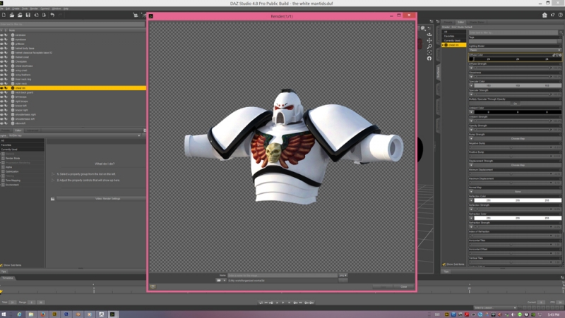 ok as promised i am posting the process of the pervious post here and explaining why i do what i do and holy heck! never again will i set up a render to have lights on the epic wings from DAZ... good grief it DOES look good but with OVER AN HOUR render...no... just no.