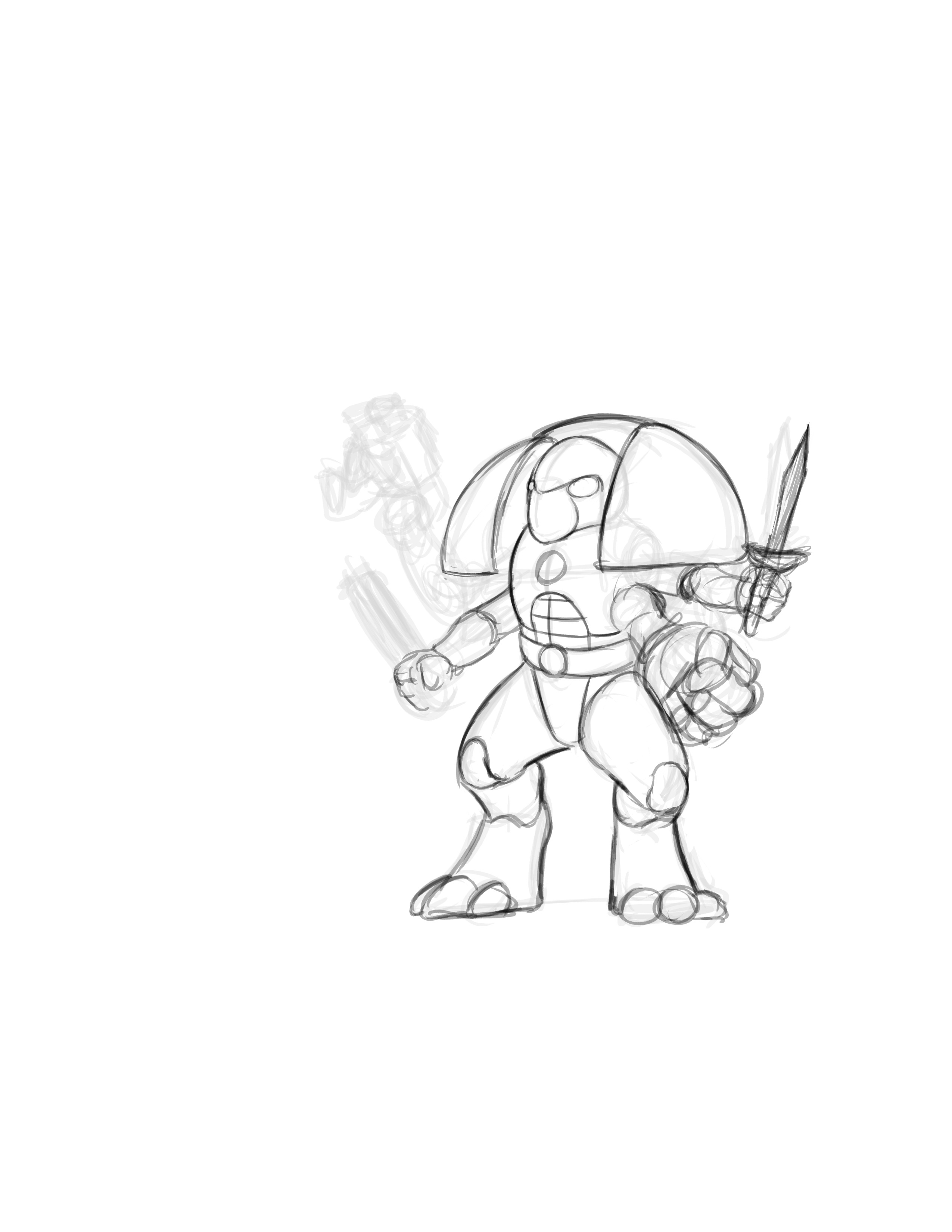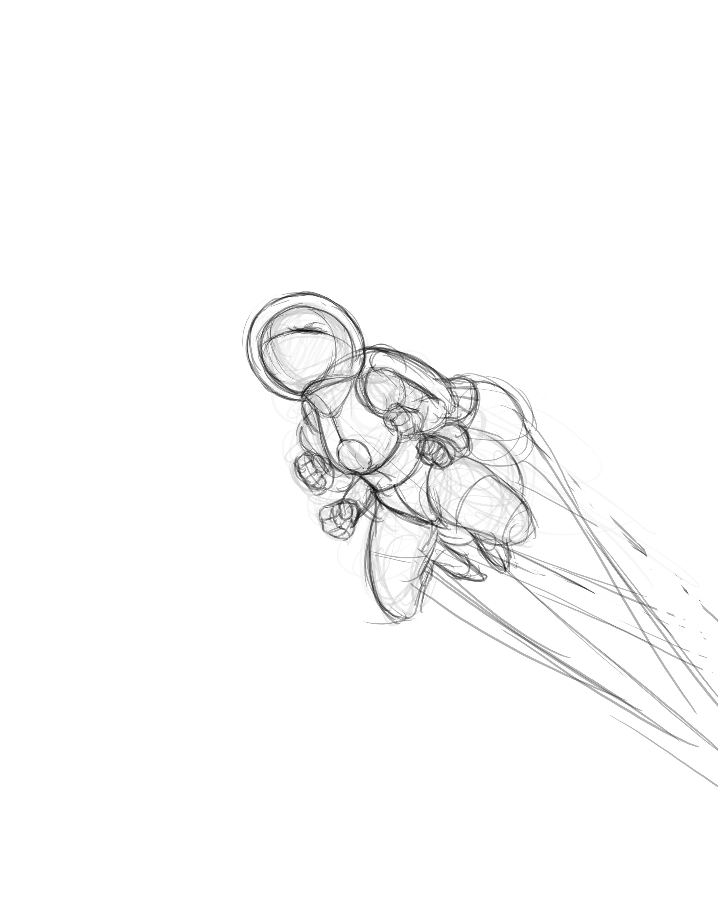 as you can see this is the render without the 3d model. as you are sketching turn the under layer on AND off periodically as you check to make sure your gesture is working right. at this point you can throw away the 3d layer as you have all the necessary structural information you need. i however am color blind in certian reds and greens so i keep the render for a color and a light base refrence