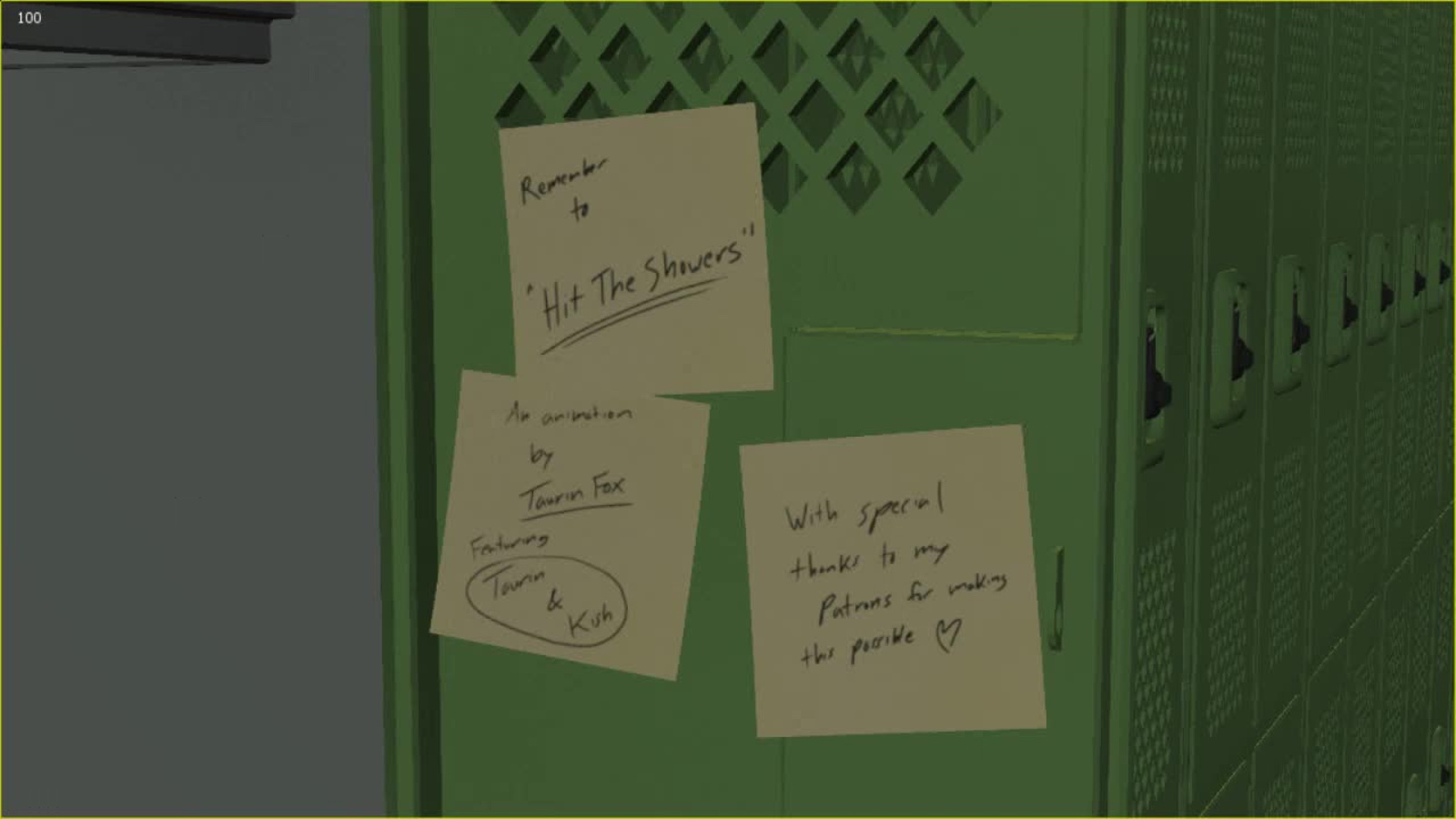 Rendering is finished for Hit the Showers! I had to make some edits to fix some rendering issues, but now all that's left is the sound. Kish and Asher will be working their audio magic on it tomorrow, and that's on track for release this month =)