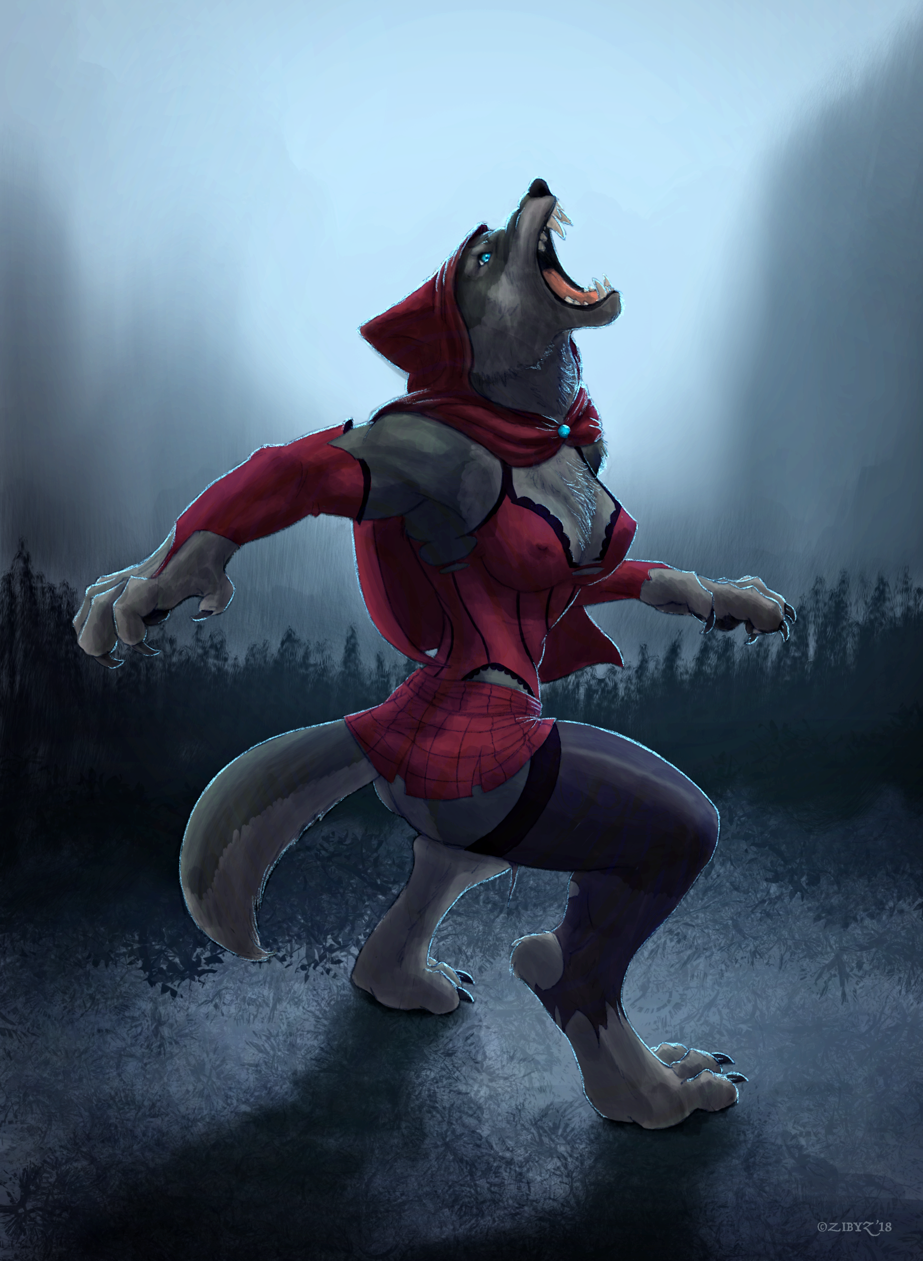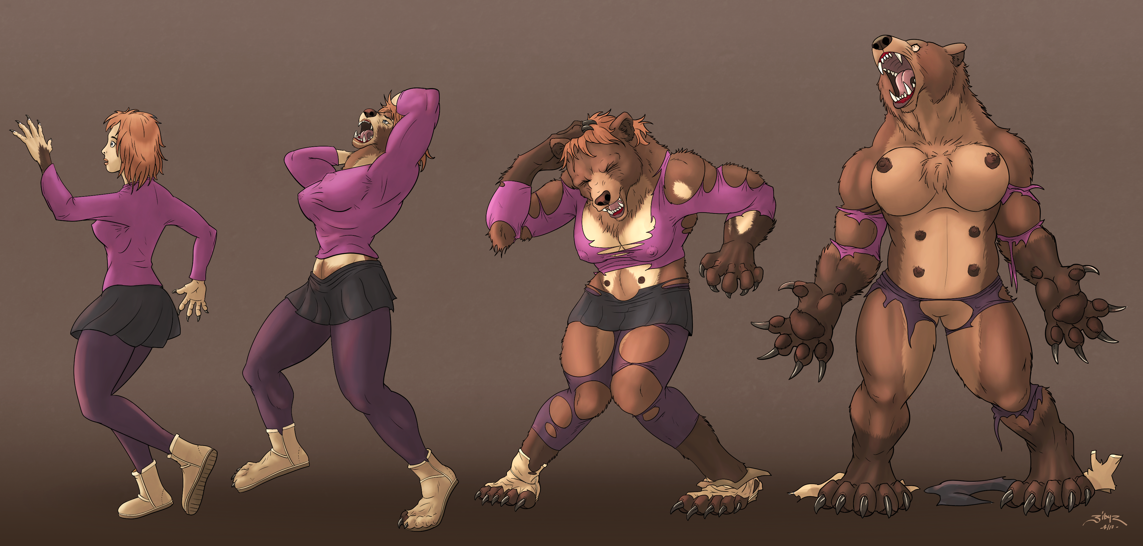 Kind of detailed transformation in earlier phases of a lady werewolf.