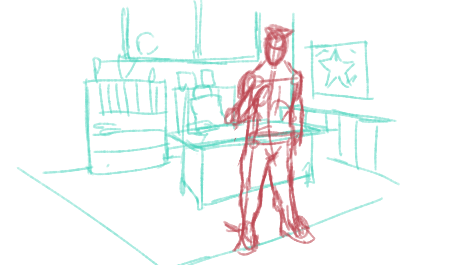 1. Final and fixed sketch checking the shadow to see how drawing works.