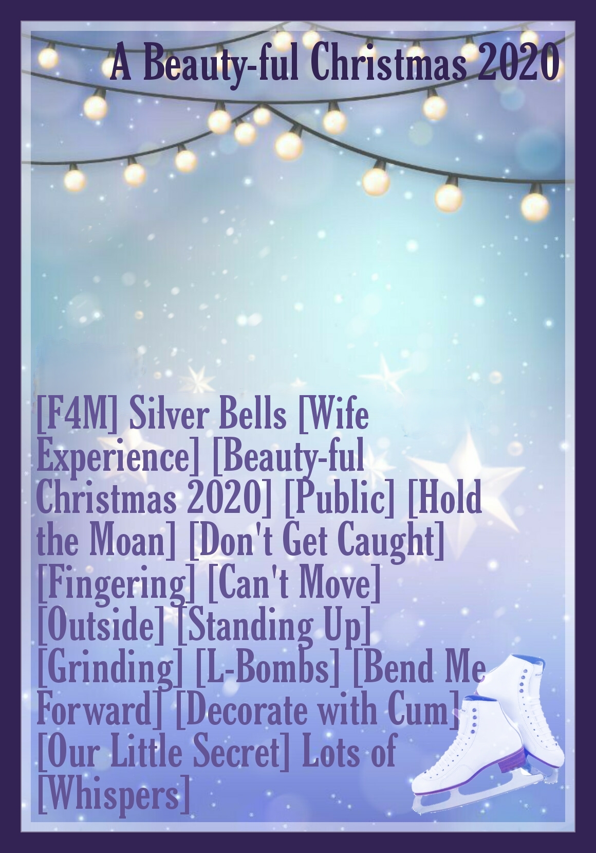 | - | A Beauty-ful Christmas 2021 [F4F] Have Yourself a Merry Little Christmas [Friends to Lovers][Public][Hold the Moan][Cover My Mouth].m4a | 20307764 | 2022-12-09 15:39:49 |