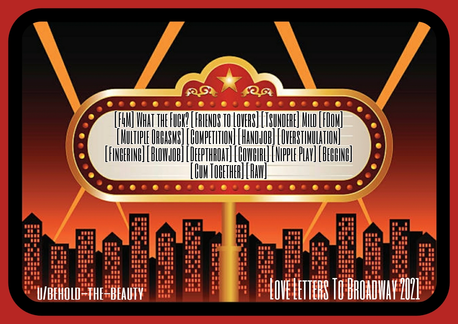 | - | Love Letters To Broadway, Day Six [F4M] What The Fuck [Friends to Lovers][Binaural][Tsundere] Mild [FDom][Multiple Orgasms].m4a | 35609941 | 2022-12-09 16:08:34 |