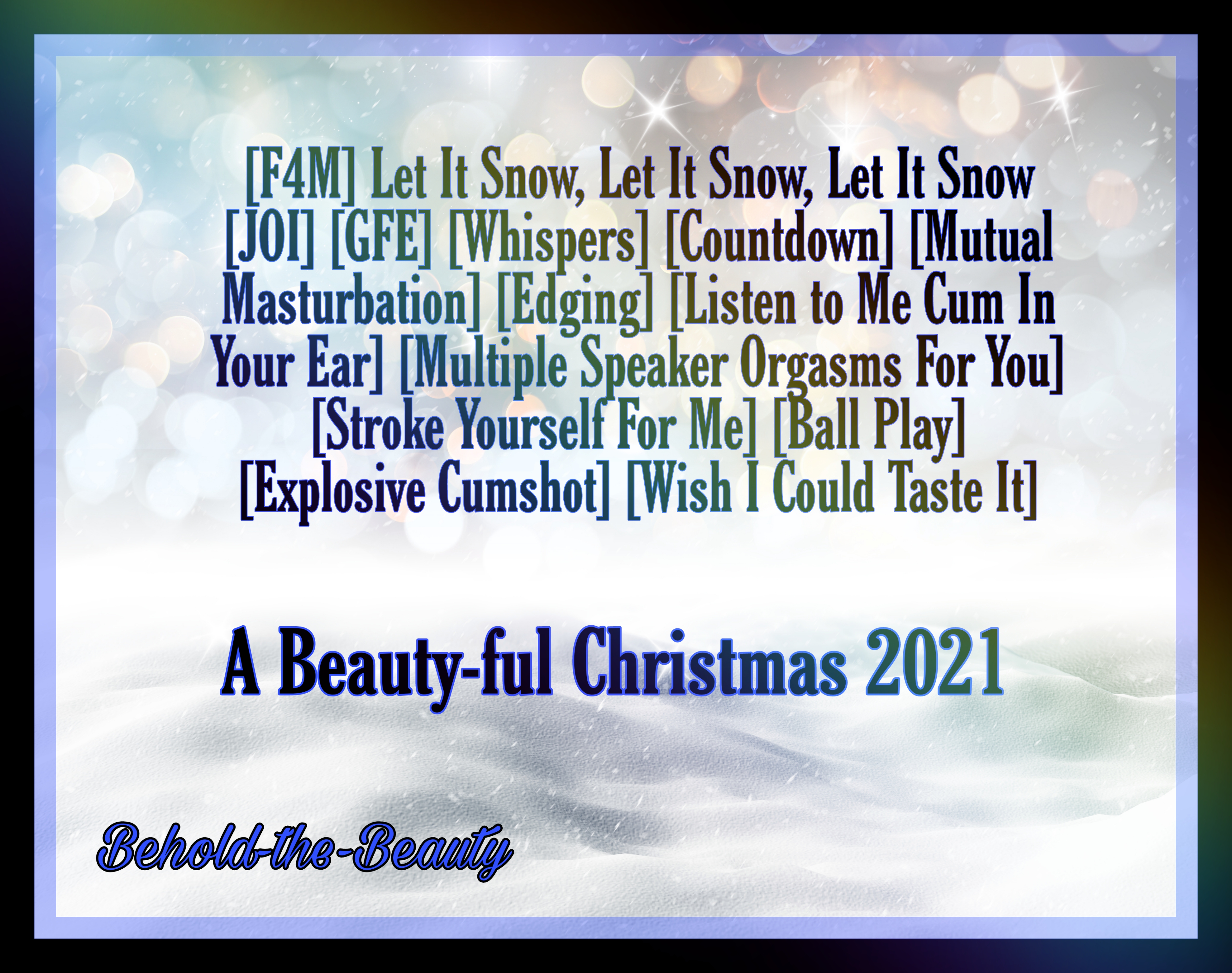 | - | A Beauty-ful Christmas 2021, Day Six [F4M] Let It Snow, Let It Snow, Let It Snow [JOI][GFE][Whispers][Countdown].m4a | 22690894 | 2022-12-09 14:17:42 |
