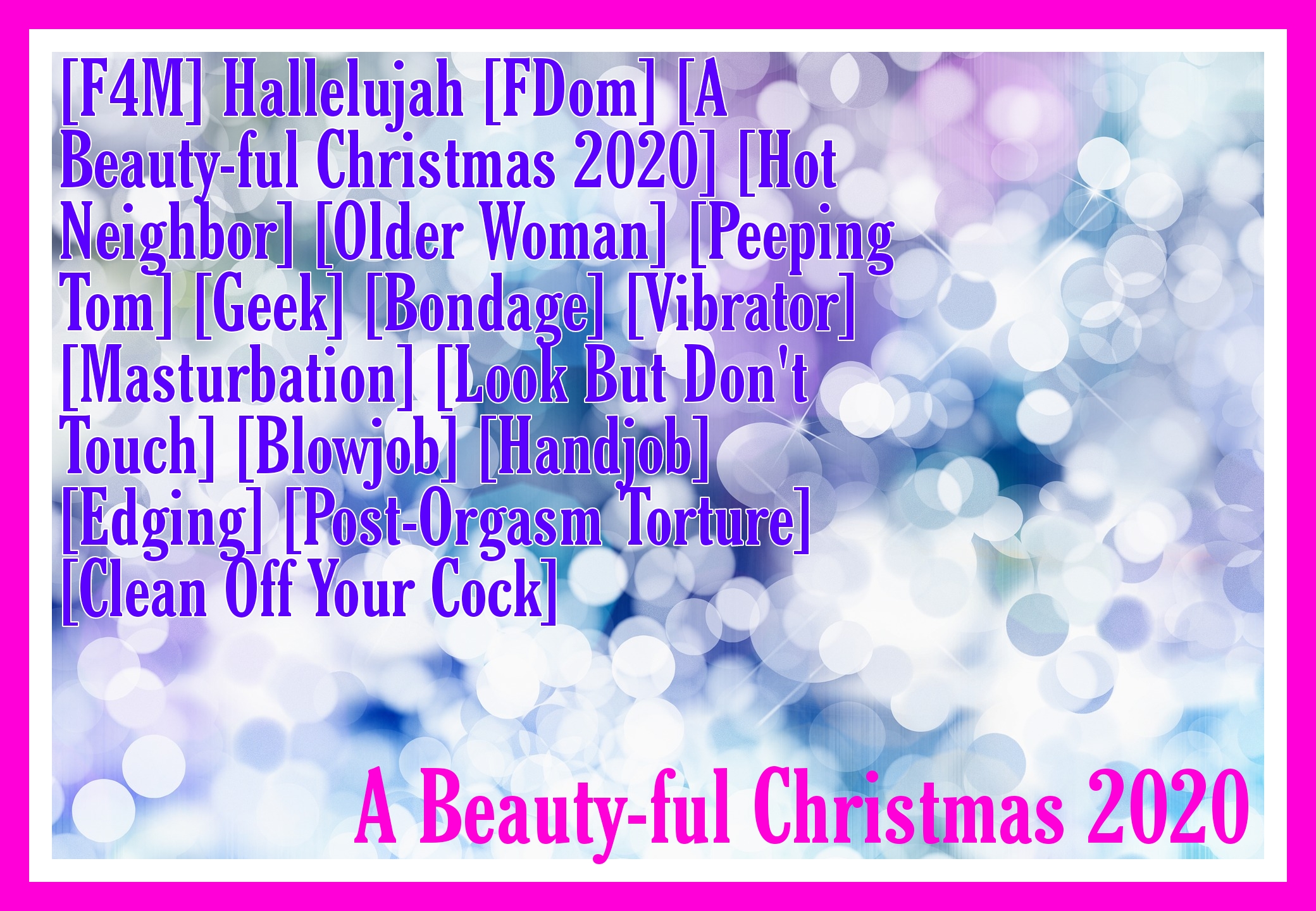 | - | A Beauty-ful Christmas 2020, Day Eight [F4M] Hallelujah [FDom][A Beauty-ful Christmas 2020][Hot Neighbor][Older Woman][Peeping Tom].m4a | 26927955 | 2022-12-09 14:13:41 |
