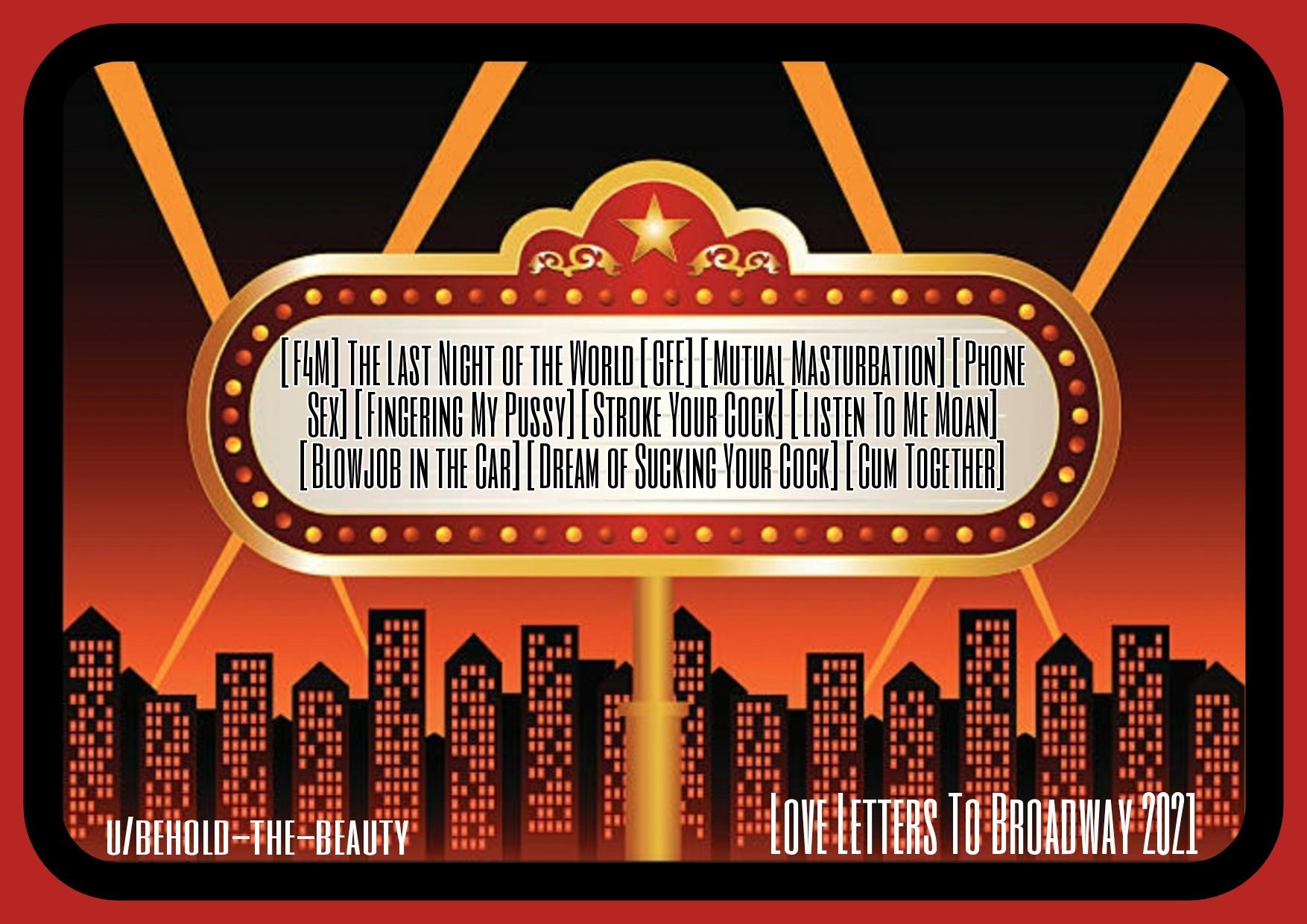 | - | Love Letters To Broadway, Day Three [F4M] The Last Night of the World [GFE][Mutual Masturbation][Phone Sex][Fingering My Pussy] 2.m4a | 4063866 | 2022-12-09 16:08:41 |