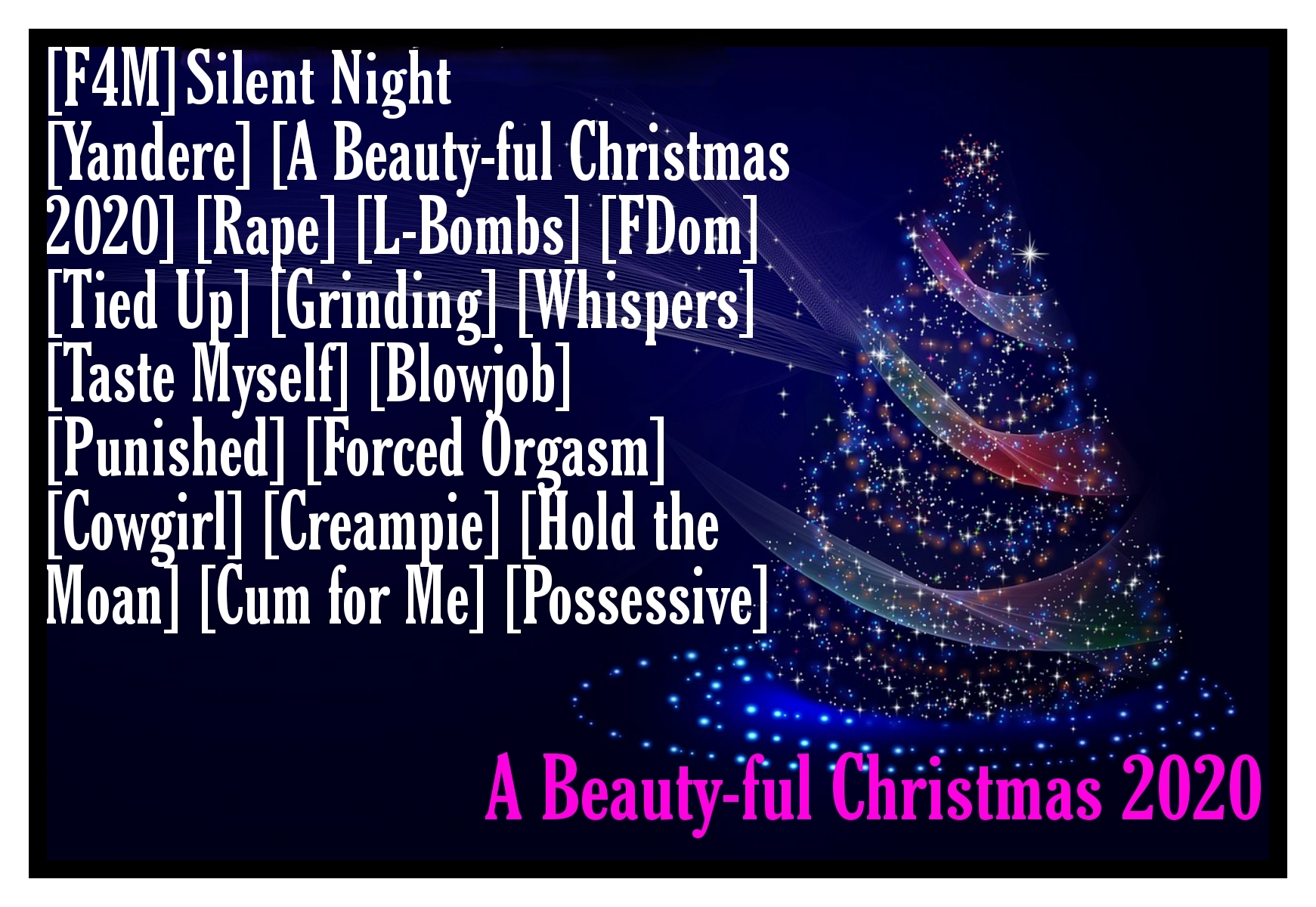 | - | A Beauty-ful Christmas 2020, Day Six [F4M] Silent Night [Yandere][A Beauty-ful Christmas 2020][Rape][L-Bombs][FDom][Tied Up].m4a | 28618184 | 2022-12-09 14:14:50 |