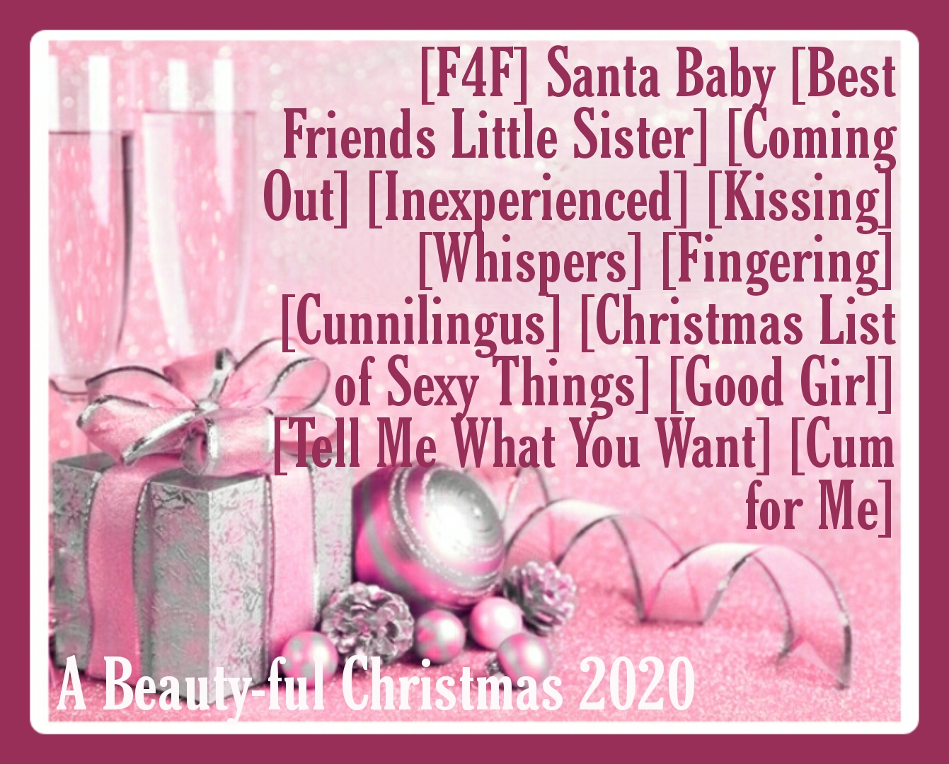 | - | A Beauty-ful Christmas 2020, Day Three [F4F] Santa Baby [Best Friends Little Sister][Coming Out][Inexperienced][Kissing][Whispers].m4a | 29495565 | 2022-12-09 14:15:48 |