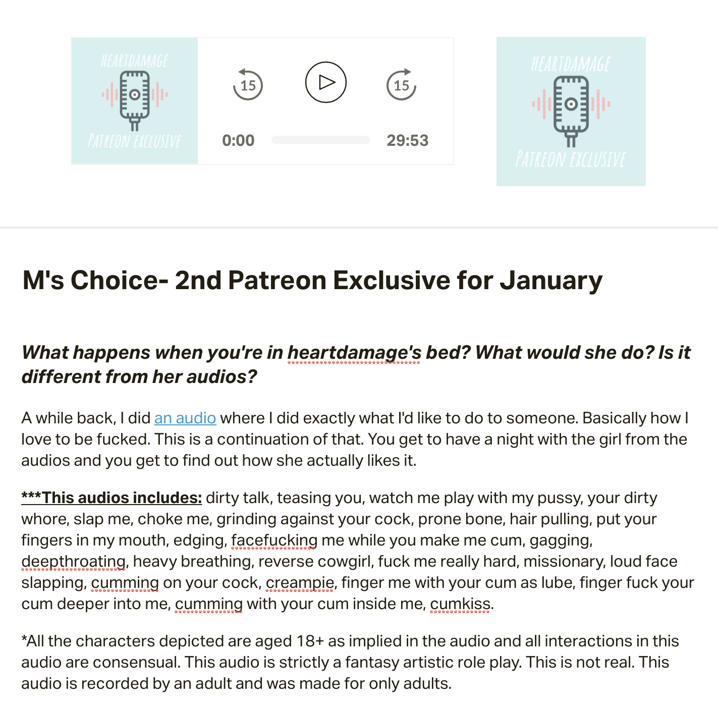 | - | [F4M] the barely legal babysitter fucks you as a thank you.m4a | 19428859 | 2022-12-09 18:20:33 |