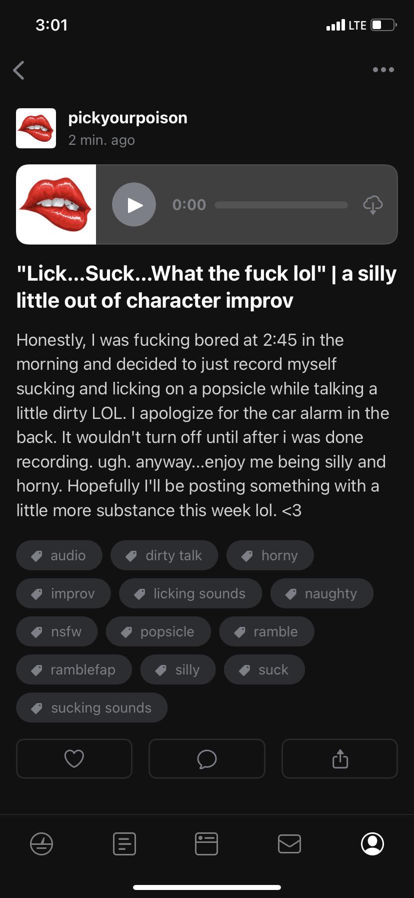 | - | [F4M] lick, suck, what the fuck lol [random][silly][improv][licking sounds][sucking sounds][slight gag sound][dirty talk][i wish.m4a | 7482014 | 2022-12-09 18:12:28 |