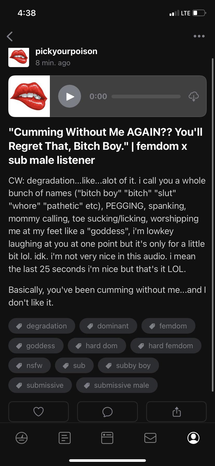 | - | [F4M] Cumming Without Me AGAIN You'll Regret That, Bitch Boy [femdom][degradation][pegging][toe sucking][worship me].m4a | 16649468 | 2022-12-09 18:12:31 |