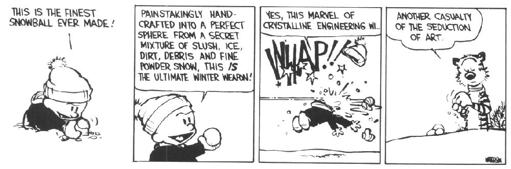 Makes me think of every Calvin and Hobbes snowball comic ever. :3
