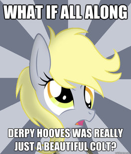 My head-canon is that Raindrops is Derpy's adoptive sister (as in Derpy was adopted by Raindrops' famly). |