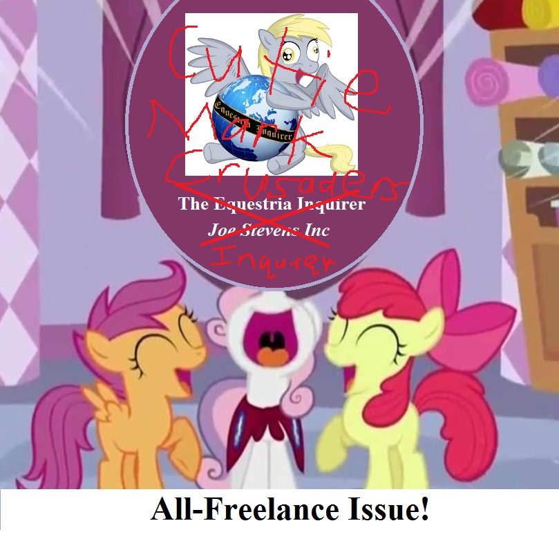Hello Equestria! We are the Cutie Mark Crusaders and we are proud to present the Equestria Inquirer’s special All-Freelance Issue! Joe wanted me to thank you guys with some gushy letter thanking you for reading or something, but I thought it’d be better for me to write the opening instead.