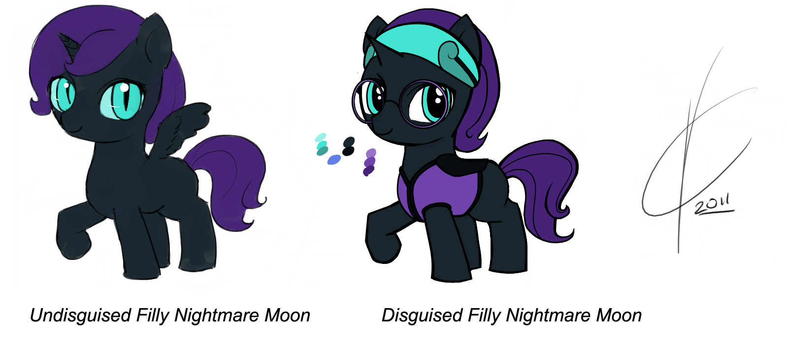 Using a wet cloth from her vanity, she cleaned away her eye shadow. The now simply black Nightmare Moon gently laid down on her bed, mind turning as she struggled to understand the choices she had made in the last few hours.