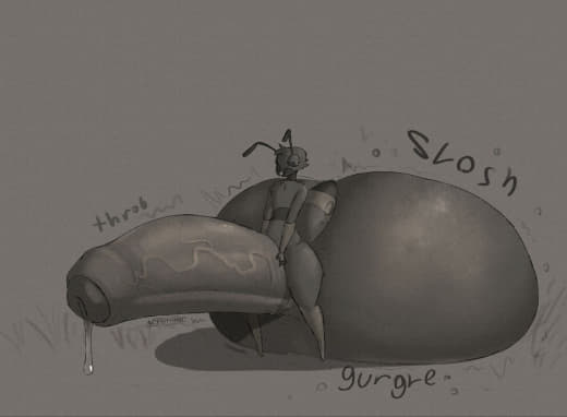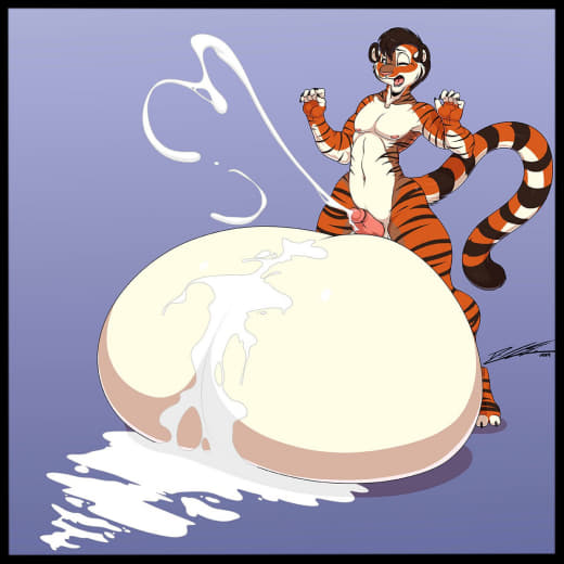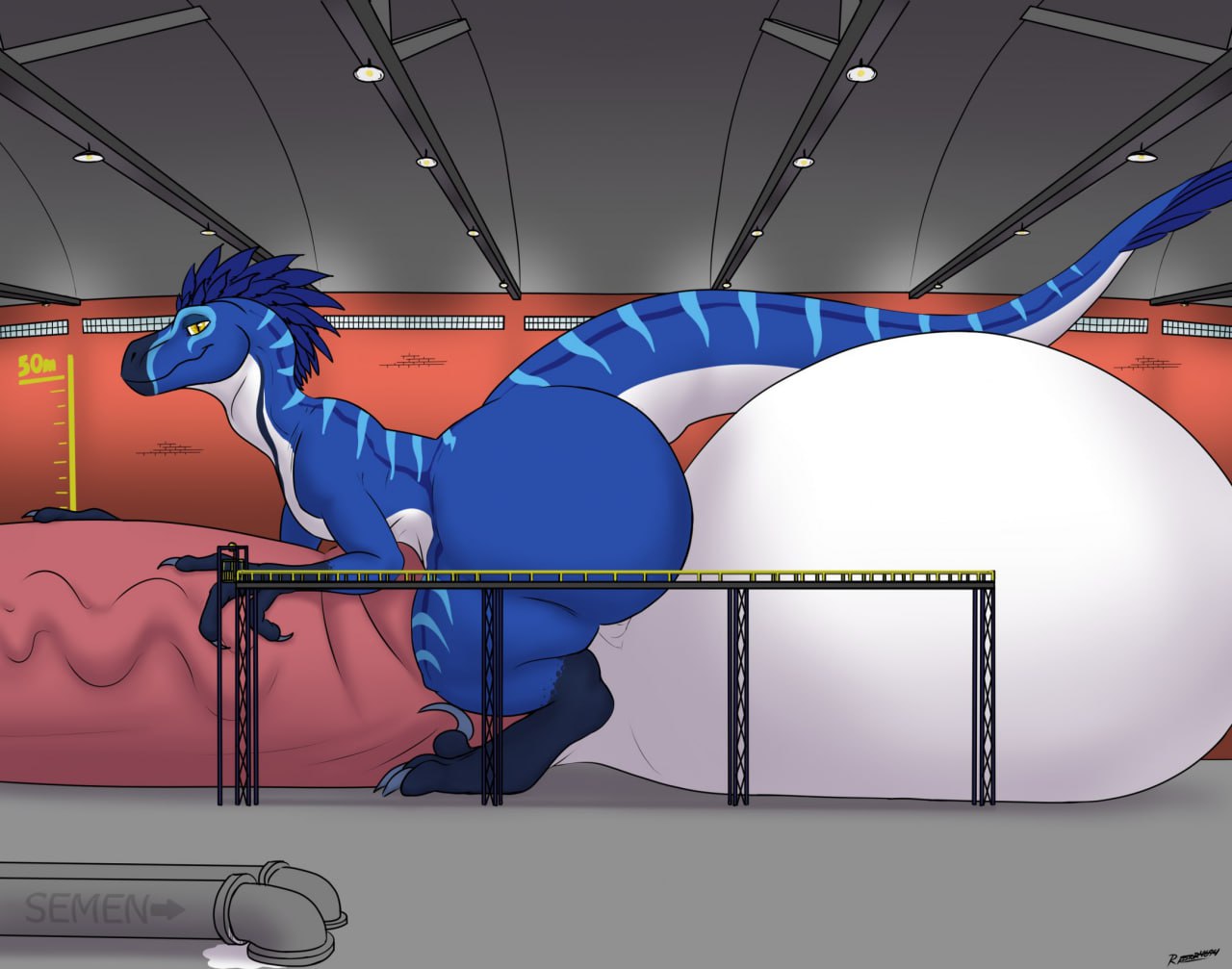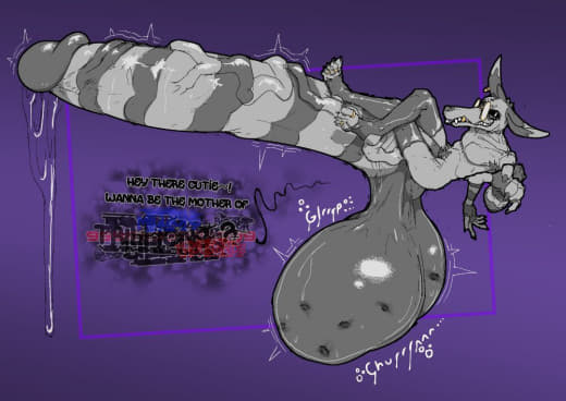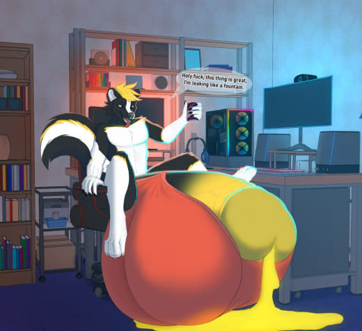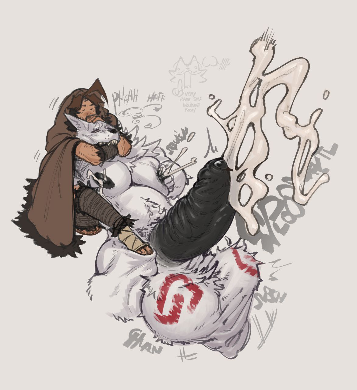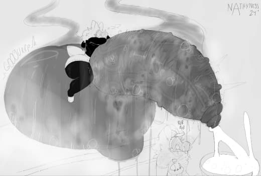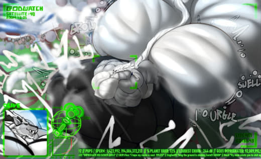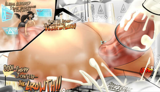 Subject did not appear to be having too much issues with the increasing pressure in his testicles, but was slightly bothered by all the heat that was generated. In fact, the heat generated by his intense sperm production caused some of the GrynteX™️ to be shed. Additionally...the musk being let off by subject's genitals were detected to have extremely elevated levels of pheromones. Lab technicians are required to don gas masks when in proximity of the subject to prevent any psychological effects induced by such pheromones.