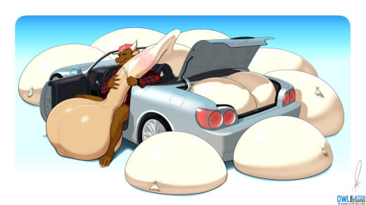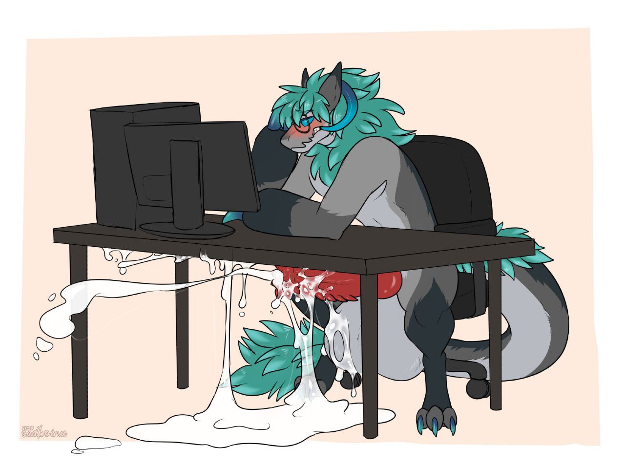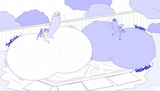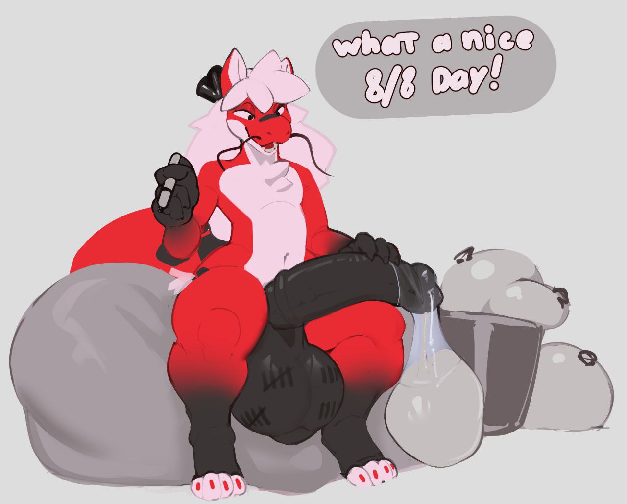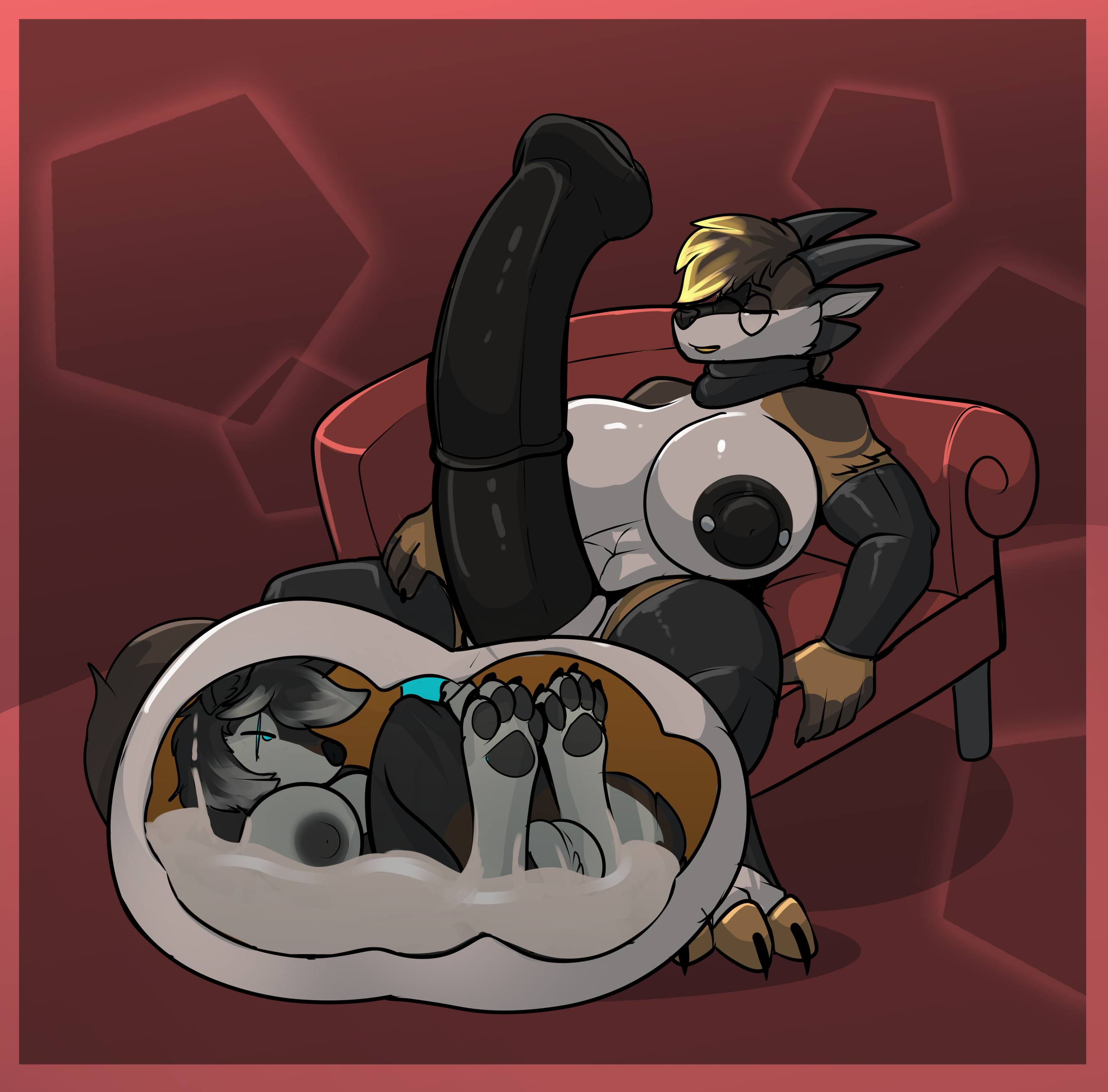 Subject did not appear to be having too much issues with the increasing pressure in his testicles, but was slightly bothered by all the heat that was generated. In fact, the heat generated by his intense sperm production caused some of the GrynteX™️ to be shed. Additionally...the musk being let off by subject's genitals were detected to have extremely elevated levels of pheromones. Lab technicians are required to don gas masks when in proximity of the subject to prevent any psychological effects induced by such pheromones.